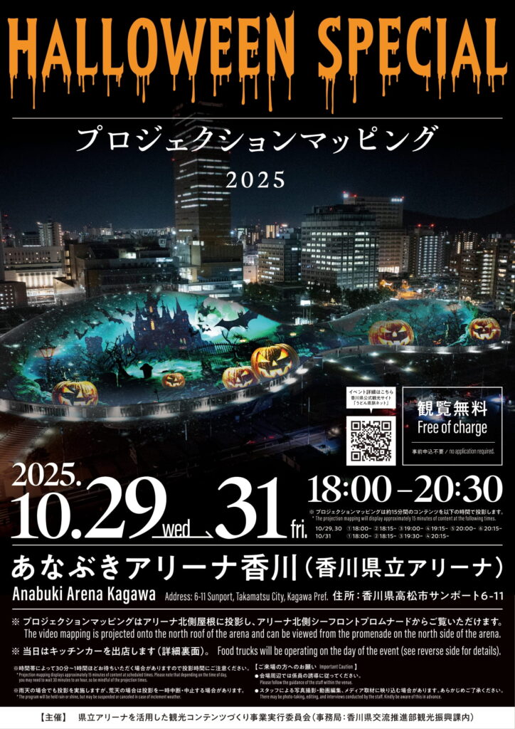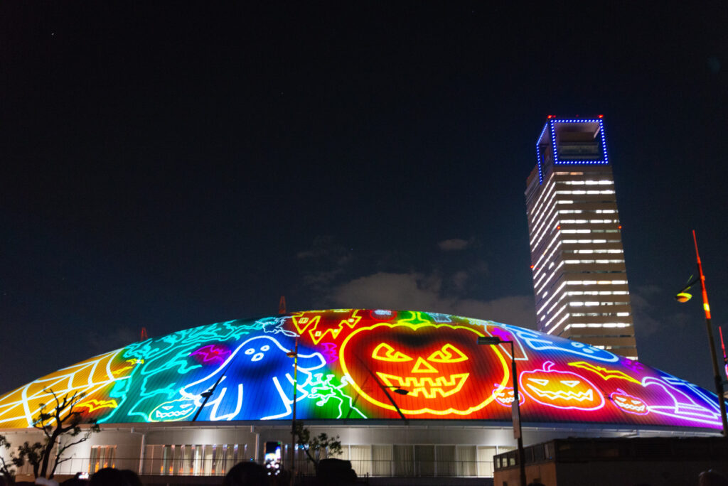 「あなぶきアリーナ香川 プロジェクションマッピング 2025 ハロウィンスペシャル」が2025年10月29日(水)〜31日(金)まであなぶきアリーナ香川(香川県高松市)で開催されましたので、10/29に見学に行ってきました!(この記事記載日は10/29)