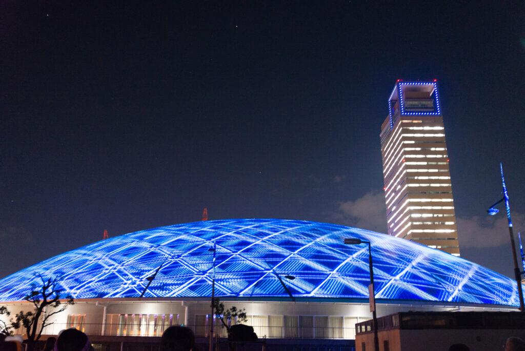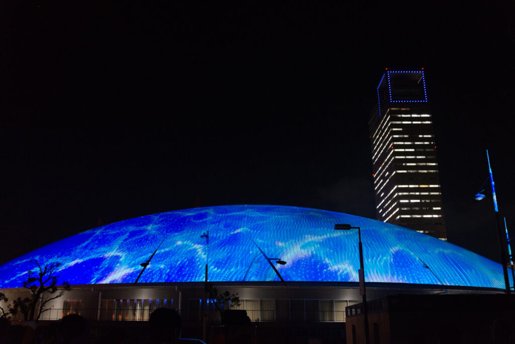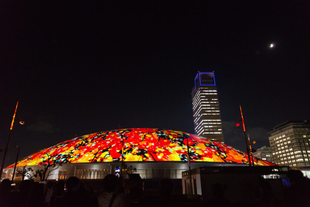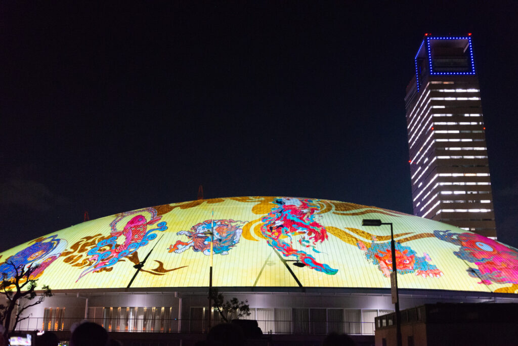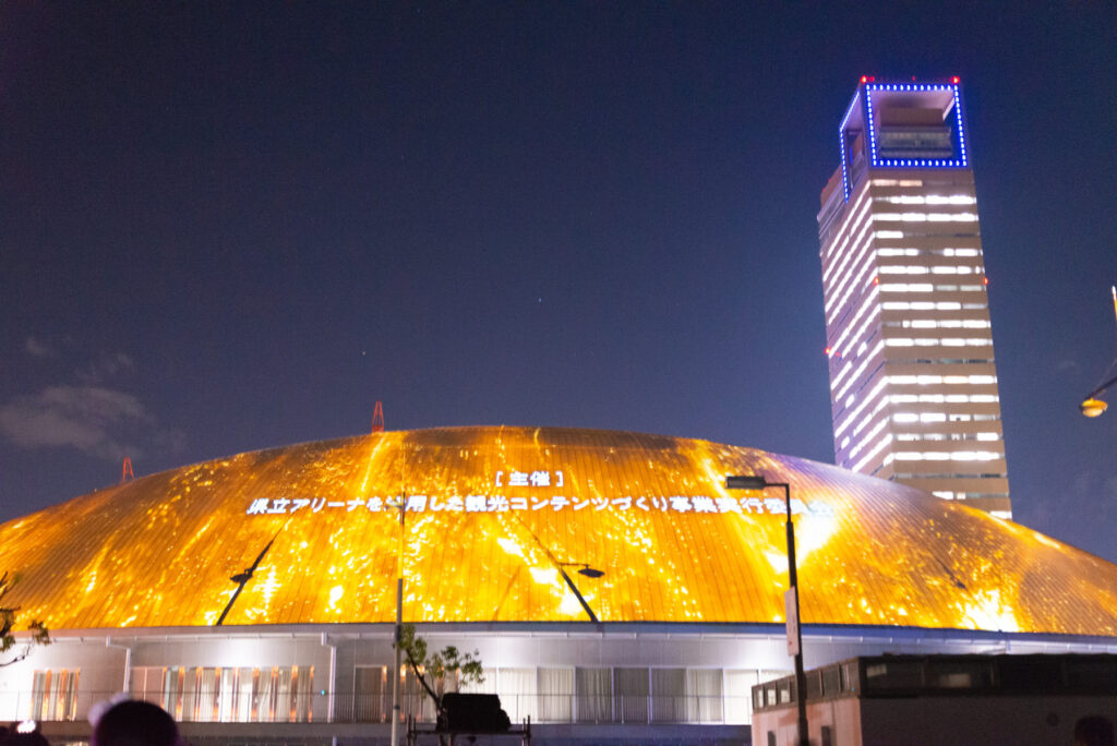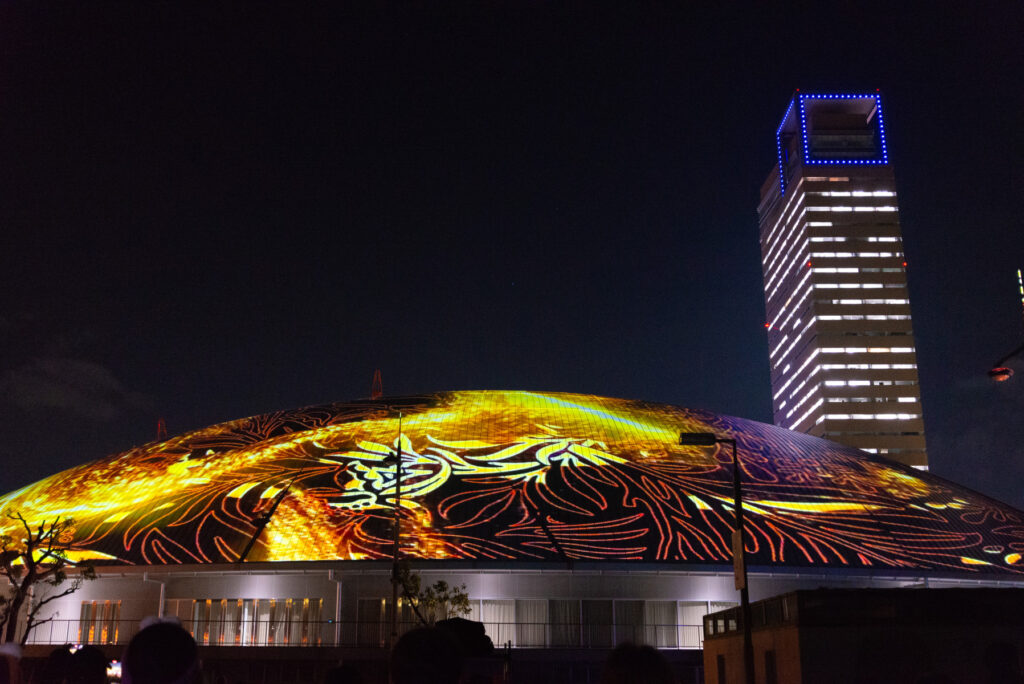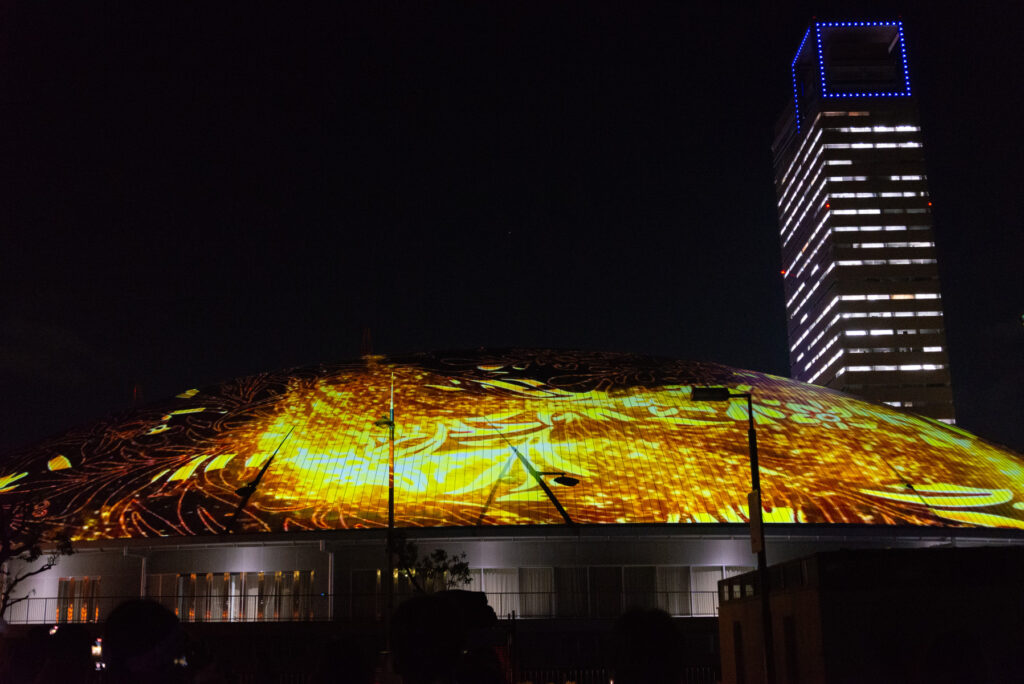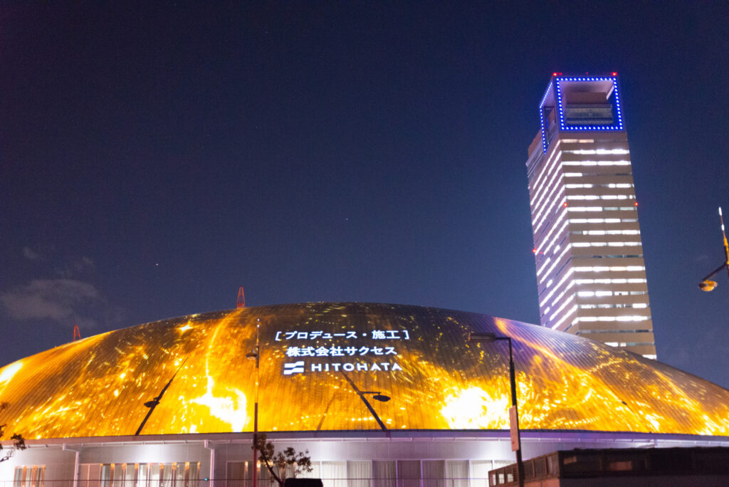 あなぶきアリーナは2025年2月にオープンしたばかりでサザンオールスターズが来たことでも四国の話題になった施設です。そんなアリーナは独特の半球状型をしており、その形を利用したプロジェクションマッピングイベントが開催されました。約14分間の壮大なスケールのプロジェクションマッピングを是非ごらんください!